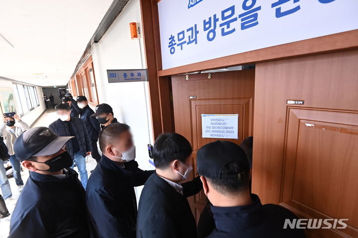 논문 초록 관련 항의 접수 후 강제수사 전환…. 총무부와 의무실 자료 확보를 위해 1차 압수수색을 위해 수사관 10여명을 도청실로 보냈다.