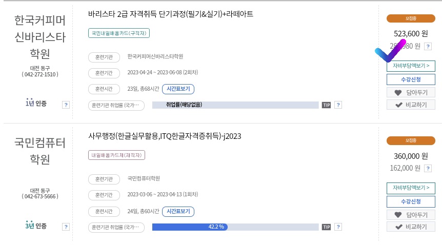 내일배움카드를 사용할 수 있는 학원