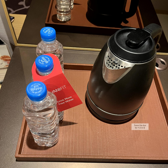 생수는 기본적으로 2병이 제공되었고 저희는 어린아이들까지 3명이라 3병이 제공되었습니다.
