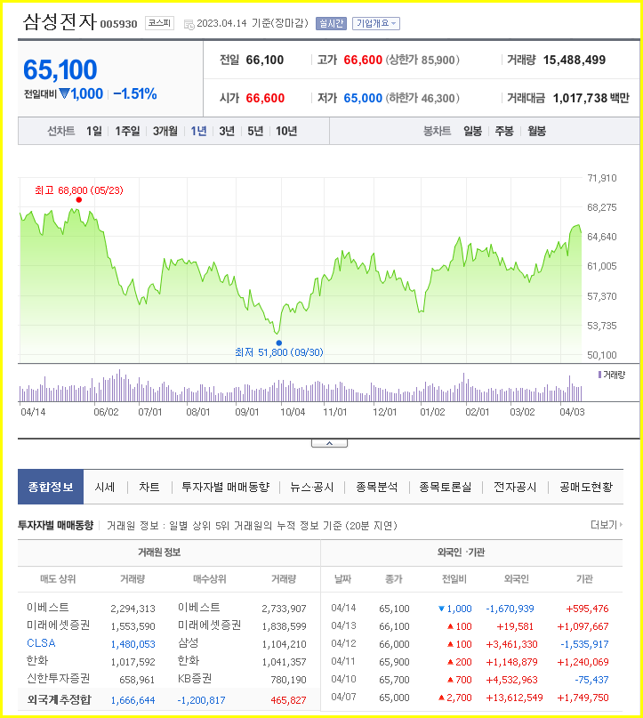 이 기사에서는 삼성전자 주가 전망, 목표주가, 기업 정보에 대해 설명한다. 주식을 보기 전에 해당 기업의 주가와 재무정보를 살펴볼 필요가 있다. 삼성전자 주식의 주요현황과 투자정보를 확인하고 현재의 시장상황을 분석해 보겠습니다.
