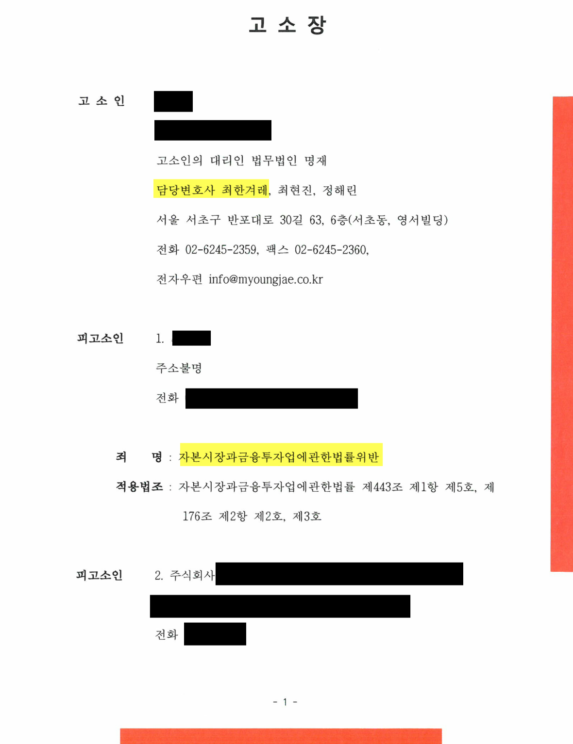 자본시장과 금융투자에 관한 법률 위반 혐의로 증권열람실과 회사 임직원을 형사 고발합니다.