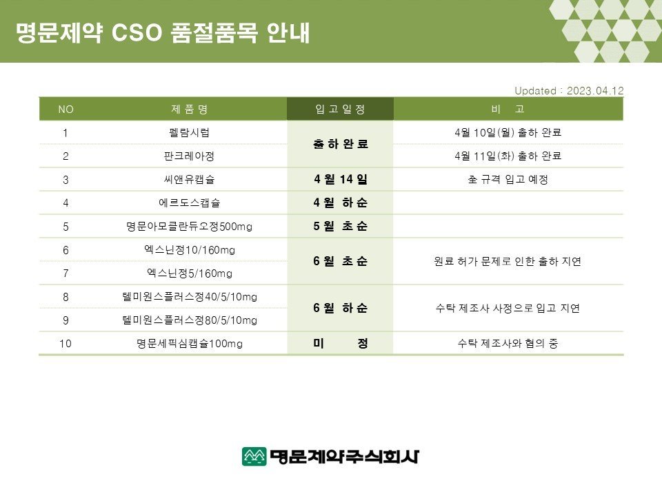 (명문제약) CSO 품절 안내