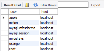 grant select on apple.member to 'orange'@'localhost'; -- select 권한 부여