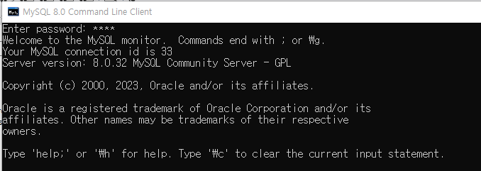 1) MySQL 8.0 명령줄 클라이언트 루트 계정으로 로그인합니다.(WorkBench에서도 실행할 수 있습니다!)